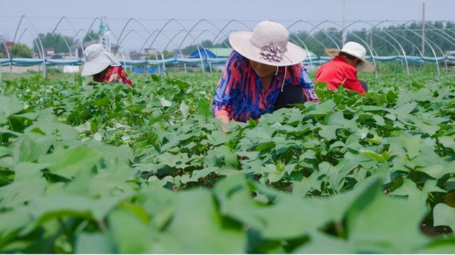 在项城市三店镇杨楼村,田间地头处处涌动着生机。翠绿的红薯藤蔓铺满田垄,村民们正麻利地修剪薯苗、打包装车。