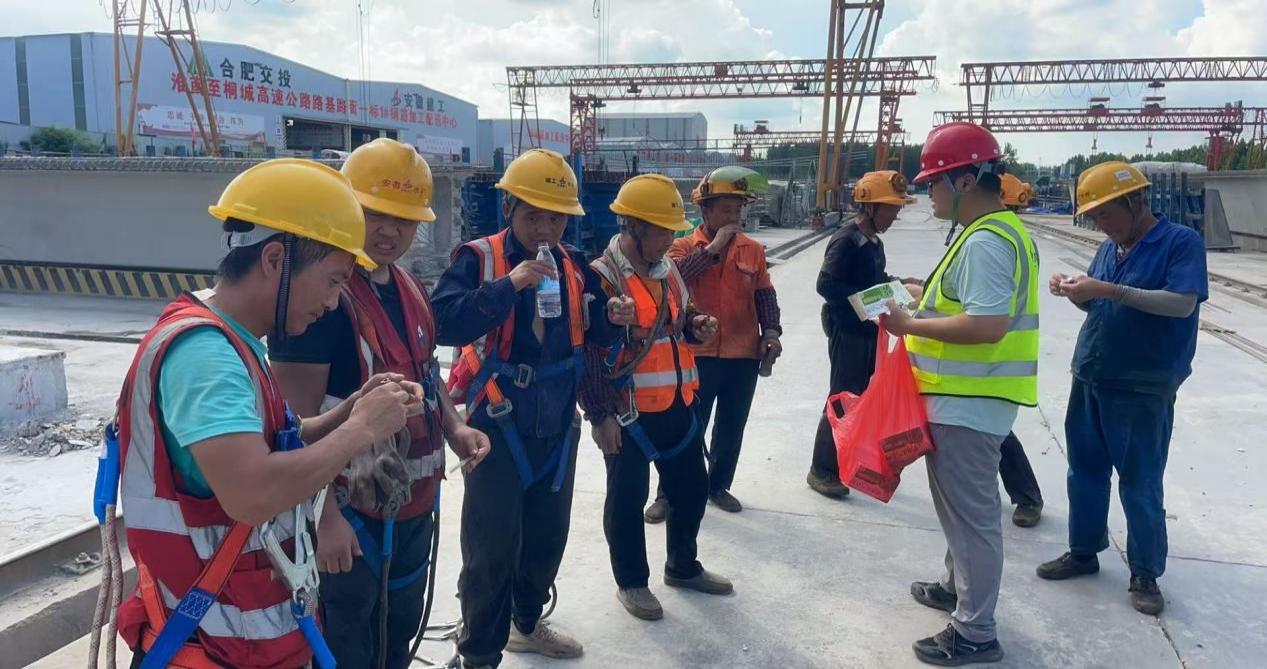 与火热的建设场面相呼应的,是细致入微的高温保障措施。淮桐01标项目部提前部署,科学应对,采取一系列“清凉”举措,如采取日两端时间段作业避开高温、搭设休息棚、现场发放冰棒、防暑药品、冰盐汽水等一系列有效措施,为奋战一线的建设者撑起“遮阳伞”,有力保障工程安全有序推进,切实落实安全生产大于天,员工健康是根本的理念。