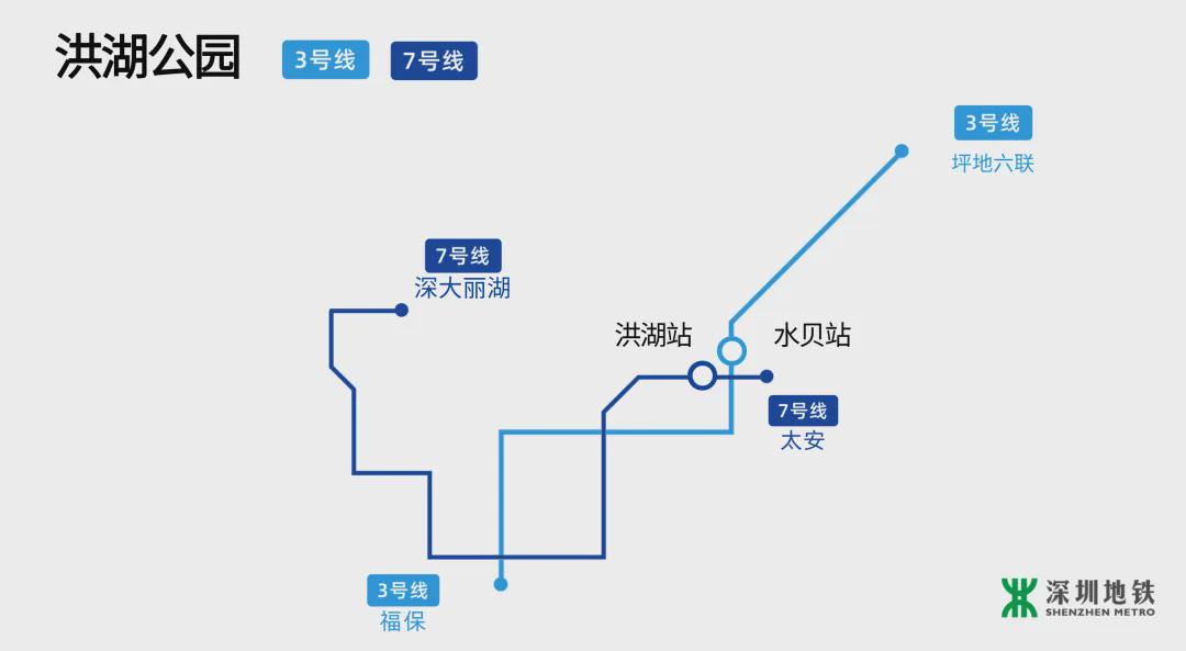 地铁:3号线水贝站/7号线洪湖站,步行前往洪湖公园